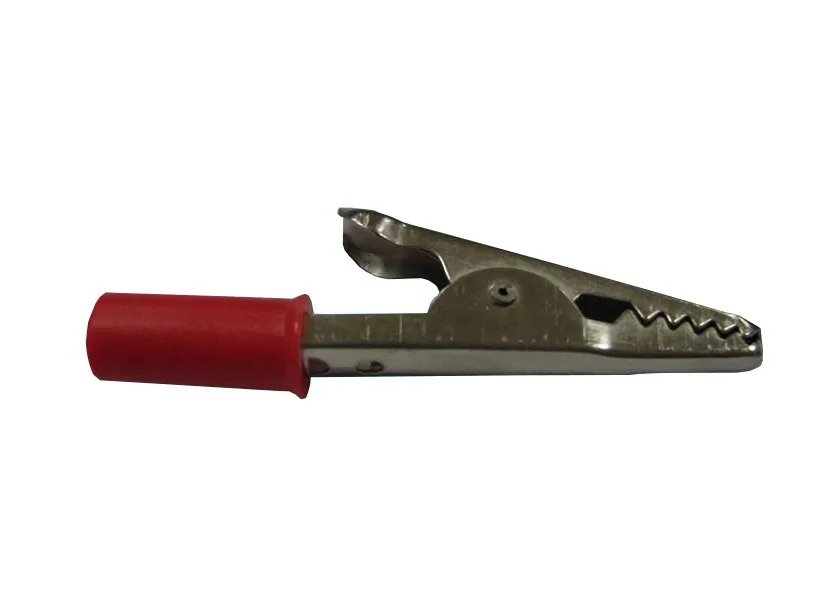 55мм*35мм Зажим тип «крокодил» - предназначен для временной фиксации проводов и незаменим для выполнения различных электротехнических работ: монтаж и прокладка кабеля, для временного соединения контактов и клемм. Используется при диагностике, ремонте и пусконаладке электрических и электронных систем для временного подсоединения к существующей аппаратуре измерительных приборов, шунтов, временных обходных и тестовых соединение. Зажим тип «крокодил» состоит из: состоит из: • двух фигурных деталей, крепящихся серединами и способных поворачиваться на некоторый угол (качаться) вокруг оси соединения. • штифта, соединяющего «верхнюю» и «нижнюю» «челюсти» так, чтобы они могли покачиваться друг относительно друга; • пружины, осуществляющей сжатие «челюстей» • пластикового покрытия (не всегда), покрывающего ручки зажима во избежание поражения электрическим током. Рабочие (сжимающиеся) края «челюстей» делают зубчатыми, благодаря чему зажим достаточно надежно соединяется практически с любым проводом или иной небольшой токонесущей деталью. На стороне, противоположной рабочей одна из «челюстей» может иметь разъем для присоединения стандартного штекера. У высокоамперных «крокодилов» вместо разъема делается площадка для припаивания провода; как правило, эта площадка закрывается надвижным (с натягом) диэлектрическим, пластиковым или резиновым цилиндром (трубкой), зачастую, с наружным рифлением — этот элемент конструкции обычно выполняет роль рукоятки для пользователя.